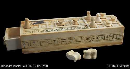 Ecco delle foto di Sandro Vannini del set più bello: quello in avorio datato al 1333 a.C., scoperto dall’esploratore Howard Carter e oggi in mostra al Museo egizio del Cairo.