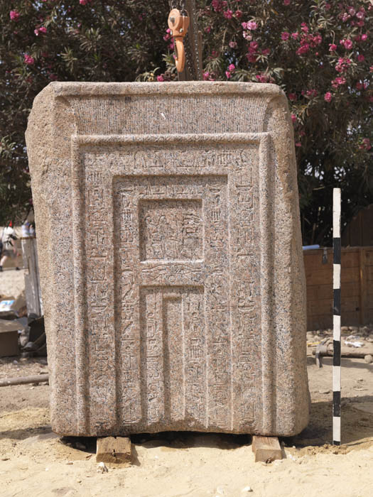 Davanti al tempio di Karnak (Luxor, Egitto) è stata dissotterrata una grande porta falsa di granito rosso appartenente alla tomba del visir della regina Hatshepsut, User, e alla moglie di questi, Toy.