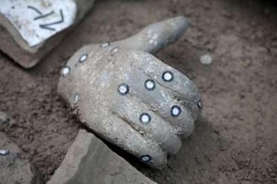 La statua del generale si trovava in mezzo a parti di due cocchi. La sua parte inferiore è stata trovata intatta, mentre quella superiore, purtroppo, era in pezzi.