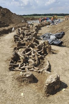 Scoperta una fossa comune di 51 cavalli sepolti fianco a fianco in un campo vicino il fiume Mosa (Maas in olandese), a Borgharen, in Olanda.