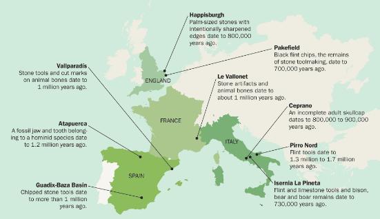Finora si pensava che in quel periodo gli uomini primitivi abitassero solo aree sotto alle Alpi e ai Pirenei (i primi resti nella Sierra de Atapuerca, in Spagna, risalgono a 1.2 milioni di anni fa).