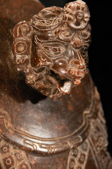 Verosimilmente, il suo corpo aveva un elaborato copricapo con piccoli glifi dipinti su di esso.