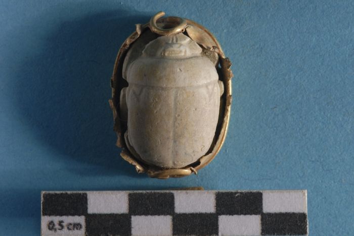 Nel vicino palazzo della Città Bassa, la dodicesima campagna di scavo degli archeologi dell’ateneo friulano ha infatti portato al ritrovamento di uno scarabeo egizio con montatura in oro risalente alla XVIII dinastia. Il cartiglio riporta la titolatura reale completa del faraone Amenhotep III, sovrano dell’Egitto dal 1390 al 1352 a.C. : “Signore dei due Paesi, Neb-Maat-Ra (il nome regale di Amenhotep III, nde), amato di Amon, prescelto da Ra”.