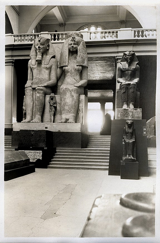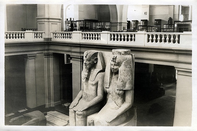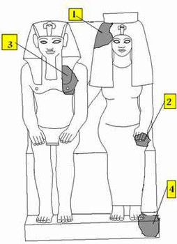 La doppia statua, attualmente esposta al Museo Egizio del Cairo, era stata scoperta nel 1889 a Medinet Habu da parte di Auguste Mariette Mariette, fondatore del museo. All’epoca un team italiano aveva restaurato la statua riempendo i buchi con della muratura moderna.