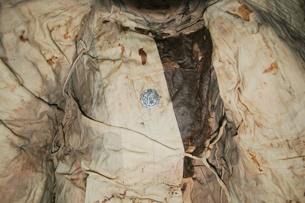 Il petto della “mummia umida” era inoltre adornato da una cosiddetta moneta per l’esorcismo: “La mia ipotesi è che la moneta venne posta sul corpo come una sorta di amuleto contro le influenze malevoli”.