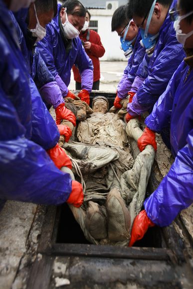 Rimossa dalla sua bara di legno lo scorso 1′ marzo, la “mummia umida” era stata trovata in una tomba scoperta casualmente vicino alla città cinese di Taizhou durante la costruzione di una strada.