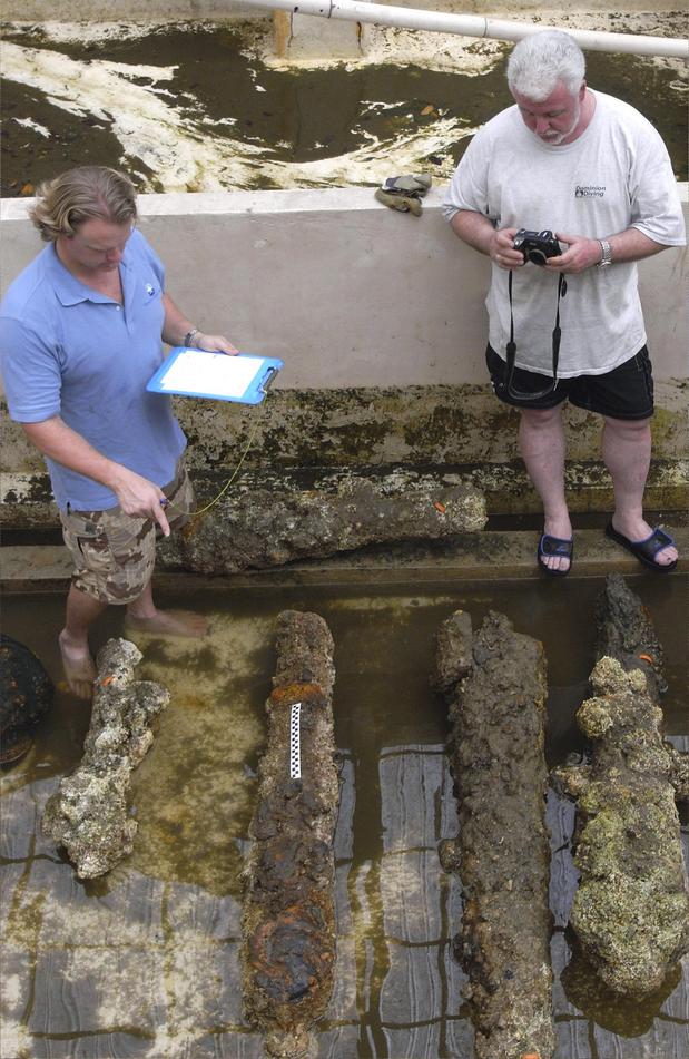 Sul fondo dell’oceano giacciono almeno altri due cannoni, insieme a un’ancora, ceramiche, bottiglie e altri manufatti.