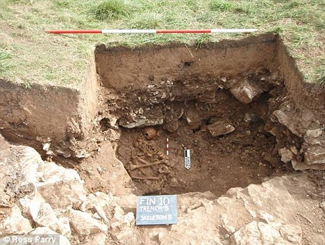 Nove scheletri sono stati scoperti in una sezione del fossato intorno al forte di Fin Cop. Dopo la morte i corpi furono coperti con le macerie di un muro di pietra.
