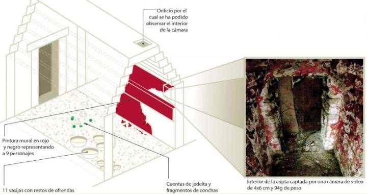 Benché finora non siano state avvistate ossa, si ritiene che la tomba custodisca i resti di un sovrano maya. Situata nell’area della cosiddetta Acropoli meridionale di Palenque, la piramide è molto simile a un’altra struttura vicina, che nel 1959 ha restituito i resti di un altro regnante.