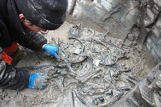 La tomba, anche conosciuta come Tomb of the Otters (Tomba delle lontre) per il gran numero di resti di lontra lì rinvenuti, era stata scoperta lo scorso anno da un contadino. A dicembre, gli archeologi avevano recuperato i resti di otto persone dalla tomba.