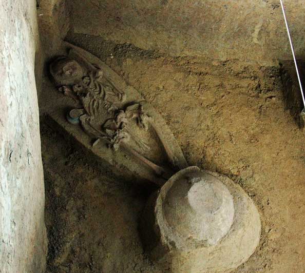 Assieme alle sepolture sono stati scoperti fischietti in ceramica e sonagli raffiguranti animali, uomini e donne, decine di coltelli di selce e ossidiana e numerosi frammenti vari.