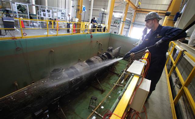 Fra non molto sarà ancora visibile al pubblico, ma all’interno di una vasca d’acqua dolce per evitare che si arrugginisca.