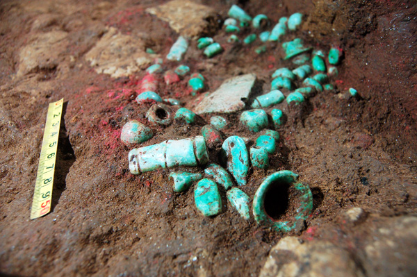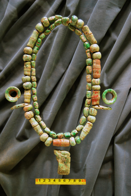 Quattro metri sotto la base di uno degli edifici cerimoniali più importanti della città precolombiana di Takalik Abaj, in Guatemala, è stata scoperta una splendida collana.