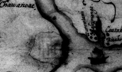 Sulla mappa ci sono due pezze. Una sembra essere stata messa semplicemente per correggere un errore, ma l’altra – in quella che oggi è la contea di Bertie nel nord-est della Carolina del Nord – nasconde ciò che sembra essere il simbolo di un forte. Per gli studiosi americani e britannici potrebbe indicare la destinazione dei coloni.