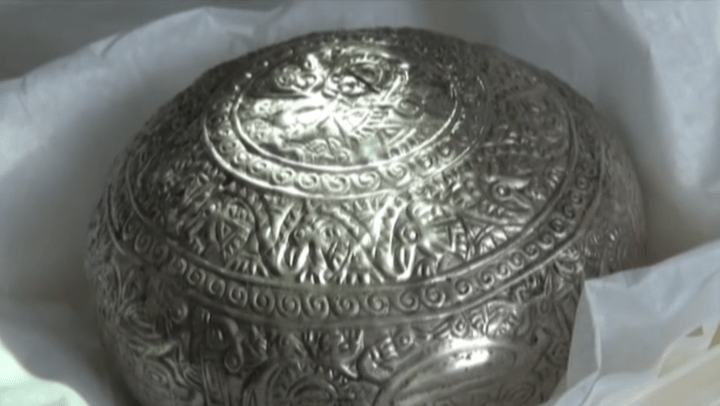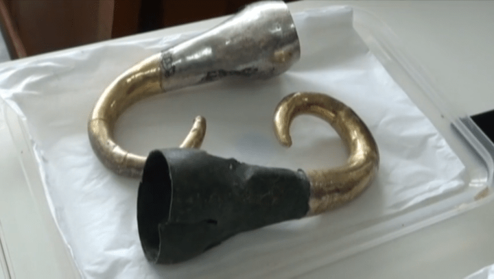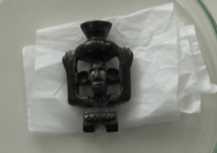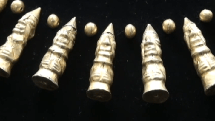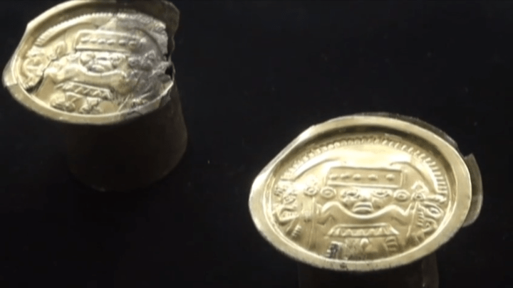 Tra gli emblemi del potere vi erano un “copriorecchie” d’oro, una corona placcato argento e un centinaio di ornamenti d’argento e rame, oltre a numerosi pezzi di ceramica e conchiglie.