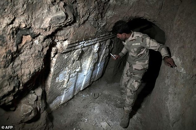 Le opere sembrano rappresentare sacerdoti e cerimonie religiose. I tunnel erano stati scavati sotto a una collinetta danneggiata nel 2014, quando l’ISIS fece saltare in aria una bellissima moschea del XII secolo, ritenuta contenere la tomba del profeta Giona.