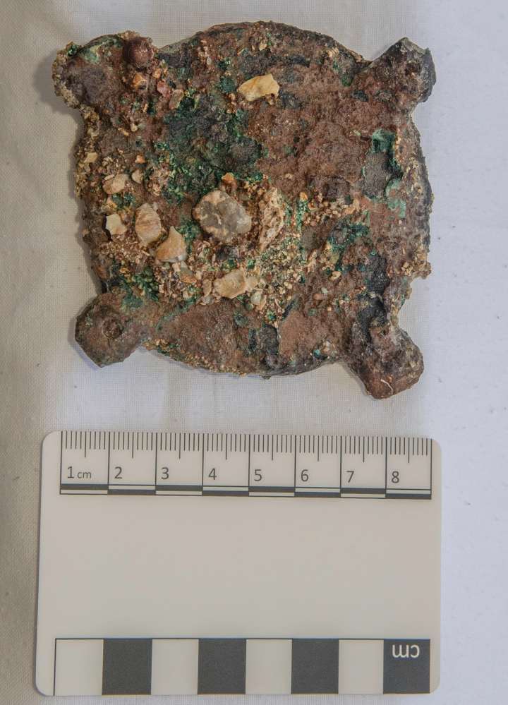 La squadra di Foley e Theodoulou ha recuperato anche un intrigante disco o ruota di bronzo, di circa 8 centimetri di diametro, attaccato a quattro bracci metallici con fori per i perni. Uno strato di sedimento nasconde la sua struttura interna, ma la superficie ricorda il meccanismo Anticitera, e i ricercatori inizialmente avevano sperato che facesse parte di quel dispositivo: magari era un ingranaggio che calcolava le posizioni dei pianeti, ancora mancante.