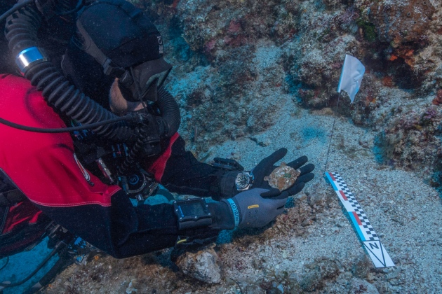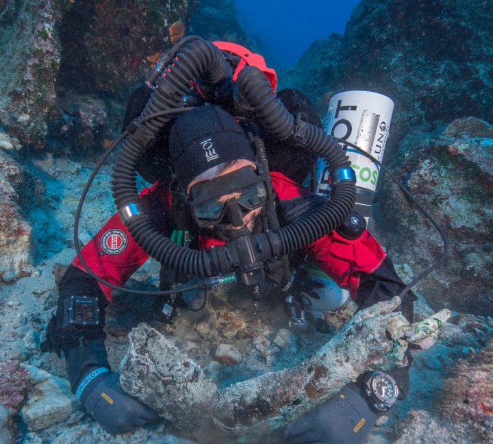 Così una squadra internazionale di archeologi e subacquei, diretta da Brendan Foley (Università di Lund, Svezia) e Theotokis Theodoulou (Eforato greco per le Antichità Subacquee), sta scavando ancora il sito del relitto a 50 metri di profondità. Dal 2014 sono già state effettuate diverse scoperte – giare di vino, grosse ancore, gioielli d’oro e uno scheletro umano il cui DNA è in corso d’analisi. Ma finora non era ancora stata recuperata una statua. Il 4 ottobre la squadra ha annunciato che la stagione di 16 giorni di immersioni a settembre ha portato al ritrovamento di parecchi pezzi importanti di statue, tra cui due piedi di marmo attaccati a un piedistallo, parte di una toga di bronzo e il braccio di uomo in bronzo – a cui mancano due dita ma che altrimenti è ben conservato. Secondo Theodoulou, la corporatura snella e la mano “ruotata” suggeriscono che il braccio possa appartenere a un filosofo.