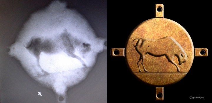 Ma le immagini preliminari ai raggi X condotte in un ospedale di Atene il 25 settembre hanno rivelato una sorpresa: invece delle ruote dentate, è apparsa l’immagine di un toro. L’oggetto potrebbe essere stato un elemento decorativo, sostiene Lapatin, forse attaccato ad una scatola o allo scudo di una statua, o anche – vista la resistente composizione – alla nave affondata. Una radiografia più dettagliata è prevista per le prossime settimane.