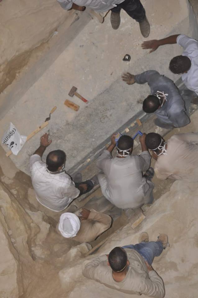 Waziry, accompagnato da una squadra di specialisti in mummificazione e restauro, ha trovato tre mummie decomposte in un liquame rosso, apparentemente dell’acqua di scarico entrata nel sarcofago attraverso una fessura sul lato destro. La tomba era stata scoperta a cinque metri sottoterra, ed è stato necessario l’aiuto degli ingegneri militari egiziani per togliere il coperchio da 15 tonnellate. Dopo aver catturato l’attenzione del mondo grazie alle sue dimensioni insolitamente grandi, gli studiosi credevano che potesse contenere i resti di una figura di spicco, se non addirittura il corpo di Alessandro Magno.