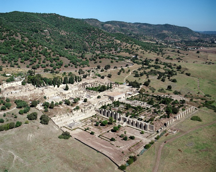 Aerial view of the Caliphate City of Medina Azahara (M. Pijuán, Madinat al-Zahra Archaeological Site (CAMaZ) )House of Ya”far. Entrance 2 (M. Pijuán, Madinat al-Zahra Archaeological Site (CAMaZ) )