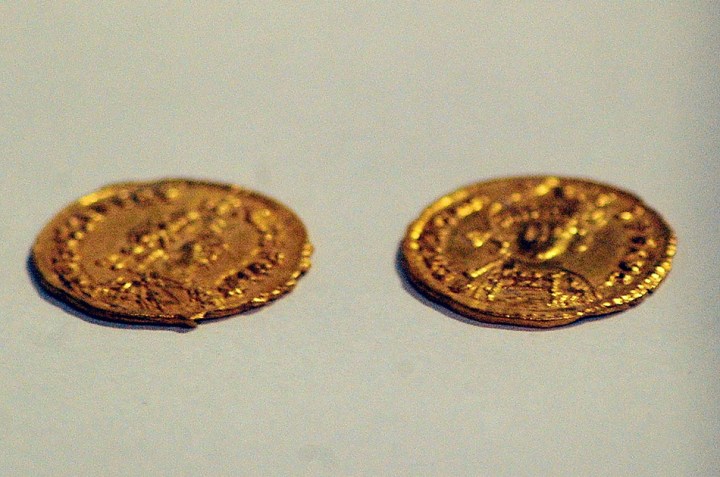 Le monete sono circa 300, ma il numero non è ancora ufficiale e solo 27 sono state pulite e analizzate. Erano contenute in un vaso ansato fatto non di terracotta, come accade di solito, ma di pietra ollare proveniente dalle Alpi centrali. «Le monete erano impilate in rotolini simili a quelli che si vedono in banca oggi», dice Facchinetti. «Recano incisioni riguardanti gli imperatori Onorio, Valentiniano III, Leone I, Antemio e Libio Severo (quindi non vanno oltre il 474 d.C.): tutto questo ci fa pensare che il proprietario non sia un soggetto privato, piuttosto potrebbe trattarsi di una cassa pubblica». Una specie di banca o deposito del tardo antico dunque, quella che la scoperta ci rivelerebbe, se fosse confermata.