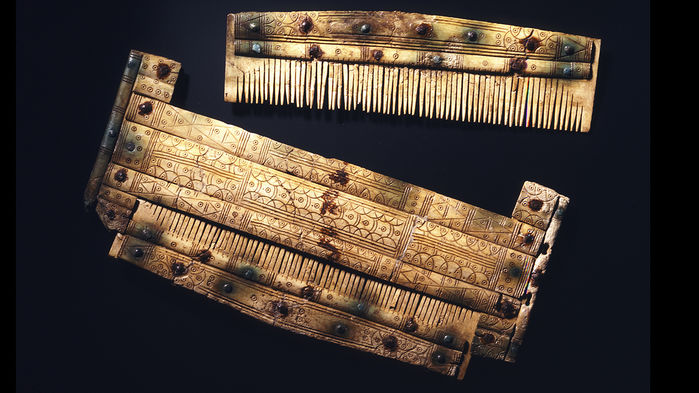 I defunti erano dei guerrieri Alemanni, una confederazione di tribù germaniche. Lontanamente imparentate con i Goti, vissero nell’Europa centrale tra il III e l’VIII secolo d.C. e si scontrarono spesso con l’Impero romano. I preziosi corredi funerari – elmi con rivestimenti in cuoio, spade, fibbie di bronzo e pettini finemente intagliati – hanno permesso la datazione delle tombe allemaniche (le adelsgrablege) all’inizio del VII secolo d.C., tra il 580 e il 630.