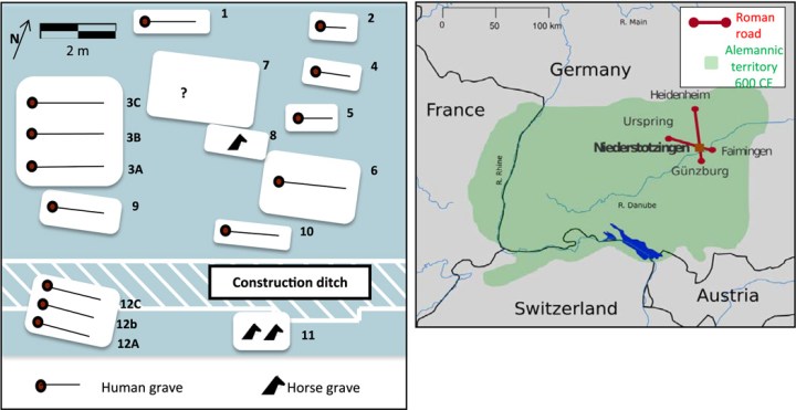 Il cimitero era stato scoperto nel 1962 nei pressi della città di Niederstotzingen. Conteneva i corpi di 10 adulti e 3 bambini, e preziosi oggetti funerari. Ma nonostante decenni di studio, nessuno sapeva come fossero morti o da dove venissero. Ora una nuova analisi del DNA e di altre tracce chimiche rivela che alcuni nacquero qui, mentre altri arrivarono da regioni lontane dell’Europa. «È uno studio convincente», afferma Alexander Mörseburg, antropologo biologico dell’Università di Cambridge (non coinvolto nella ricerca). Ma poiché i morti erano chiaramente nobili, dice, il loro stile di vita potrebbe non essere un buon riferimento per il resto della popolazione locale.