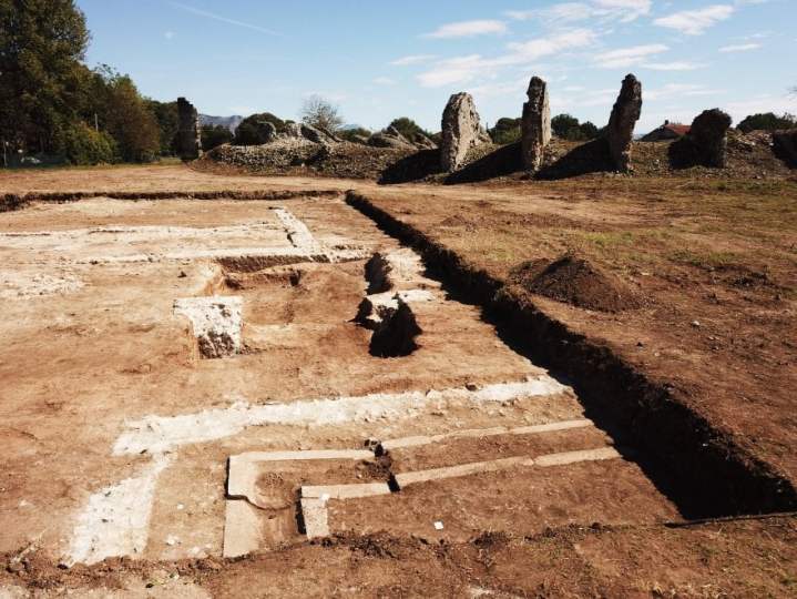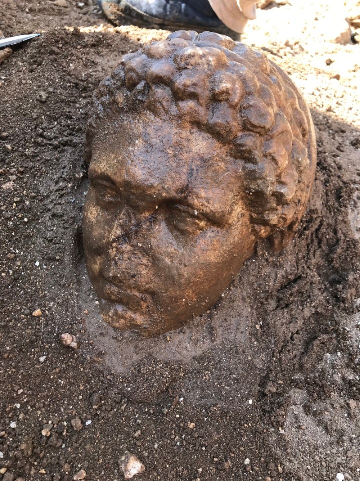 L’eccezionale ritrovamento è avvenuto nel corso della decima campagna di scavo, diretta dal 2009 dal professor Giuseppe Ceraudo. Gli scavi di quest’anno hanno indagato un nuovo settore nel cuore della città romana, in prossimità delle rovine del teatro, del cosiddetto tempio di Diana e delle enormi terme costruite dal magistrato Marcus Veccius. Le ricerche erano cominciate grazie all’ausilio dei droni, le cui immagini aeree avevano mostrato nitidamente la presenza di strutture ancora sepolte. Gli scavi hanno poi effettivamente rinvenuto l’angolo del portico di un edificio monumentale lungo la Via Latina, forse collegato con l’area del Foro. Al suo interno gli archeologi hanno trovato tre splendide teste marmoree: la prima frammentaria di un personaggio maschile barbato, molto probabilmente Ercole; la seconda di un austero volto femminile con la testa velata; il terzo volto, maschile, mostra non solo un alto livello stilistico ma soprattutto, a un esame preliminare, sembra quello di Giulio Cesare.