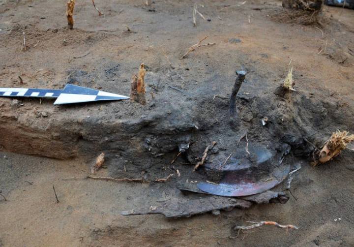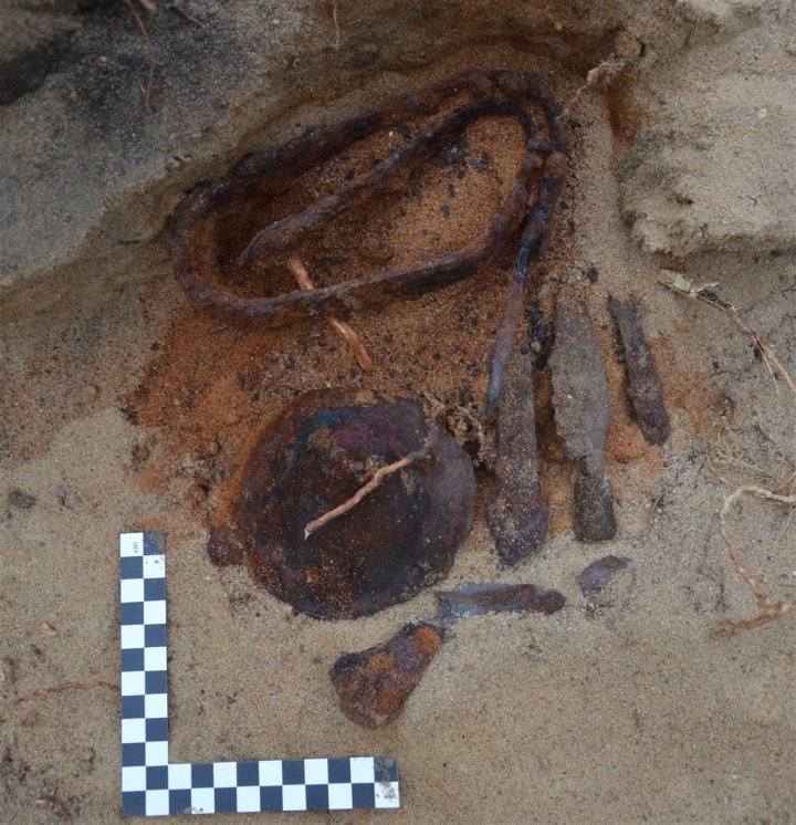 Finora sono state scavate tre tombe complete, che probabilmente appartenevano a dei guerrieri perché contenevano armi. Gli archeologi hanno scoperto dozzine di manufatti in bronzo e ferro, tra cui una spada che sarebbe stata piegata durante la cerimonia funebre, oltre a ceramiche, fibule, fibbie e altri ornamenti. «Qui le influenze di Goti e Vandali si scontrarono con le influenze delle tribù dell’Elba», dice l’archeologo polacco. Le tombe conservavano i resti delle ossa bruciate: in una, erano dentro un’urna di ceramica; nelle altre due furono versati in fosse scavate nel terreno.