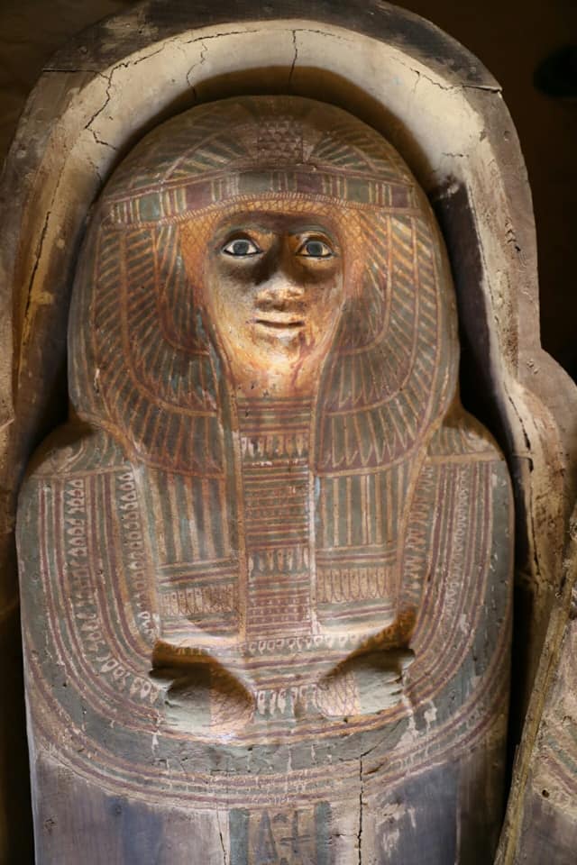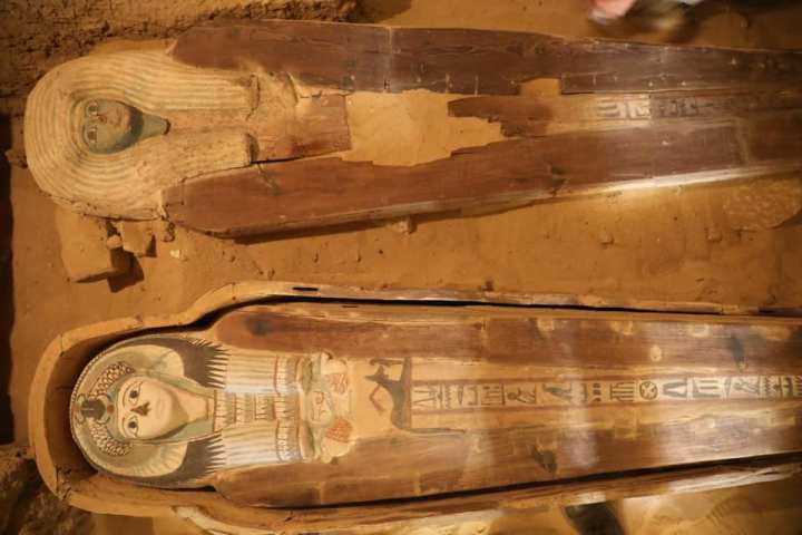 Tra i reperti più significativi vi è una statua in calcare di uno dei proprietari della tomba, di sua moglie e di suo figlio. Ashraf Mohi, direttore del sito archeologico dell’Altopiano di Giza, ha detto che il cimitero è stato riutilizzato estesamente. Sono state trovate molte bare antropoidi in legno, dipinte e decorate con geroglifici, del Periodo tardo (VII-IV secolo a.C.). Vi erano anche molti ushabti, amuleti e maschere funerarie in legno e argilla. La missione archeologica, iniziata nell’agosto 2018, è stata diretta dal segretario generale del Supremo Consiglio delle Antichità, Mustafa Waziri.