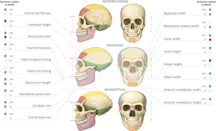«Ci aspettavamo che assomigliassero di più ai Neanderthal che ai Sapiens, e questo è ciò che abbiamo scoperto», ha dichiarato Liran Carmel, biologo computazionale dell’Università Ebraica di Gerusalemme. «La cosa più affascinante è vedere le differenze tra l’Uomo di Denisova e le altre specie umane, capire come si adattarono al loro ambiente e quale ruolo hanno i loro geni nelle popolazioni moderne». Si pensa che i Denisova abbiano vissuto in gran parte dell’Asia decine di migliaia di anni fa, ma finora non si sapeva quasi nulla del loro aspetto. Sono stati scoperti nel 2010 grazie a un frammento osseo nella grotta di Denisova, nelle montagne Altai in Siberia. Da allora sono stati trovati tre denti in quella caverna e un osso mascellare in Cina. I test genetici dimostrano che i Denisova fossero parenti stretti dei Neanderthal, e che i nostri antenati si incrociarono con loro in varie occasioni, forse fino a 15.000 anni fa. Queste unioni hanno lasciato nei moderni melanesiani e negli indigeni australiani fino al 6% di DNA di Denisova. Quantità minori sono state trovate negli asiatici orientali, nei nativi americani e nei polinesiani.