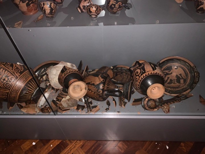 Capisco che grandi lavori ognuno ovunque le mondo si illuda sempre di poterli rimandare ancora e ancora un po’, ma almeno quel minimo di messa in sicurezza delle sovrastrutture dei coperti -che cedendo causano tipicamentre i danni più gravi- qualche minimo banalissimo espediente di stabilizzazione dei reperti entro le vetrine e ancora di più degli oggetti più grandi appoggiati alle pareti?