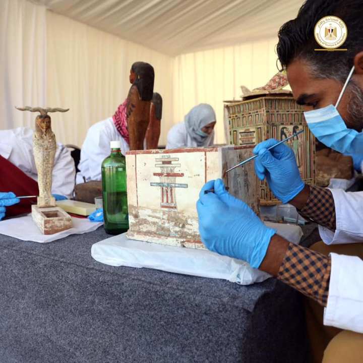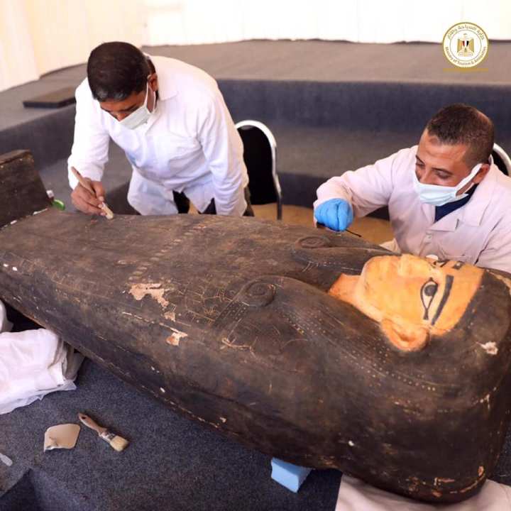 Gli archeologi egiziani hanno trovato altri “pozzi funerari pieni di bare, ben dorati, ben dipinti, ben decorati”, ha detto ai giornalisti Mostafa Waziri, segretario generale del Consiglio Supremo delle Antichità. Le bare sono ancora sigillate e alcune contengono mummie. Vi erano inoltre 40 statuette di legno del dio Ptah-Sokar (alcune con parti dorate), 20 cassette canopiche di legno dedicate a Horo, un gran numero di ushabti e amuleti, 4 maschere in cartonnage dorato e 2 statuette in legno di acacia di un sacerdote di nome “Phnomus”; una è alta 75 cm, l’altra 120. Il ministro del turismo e delle antichità, Khaled el-Anany, ha dichiarato che risalgono al Periodo tardo (664-332 a.C.) e alla dinastia tolemaica (320 a.C.-30 a.C.). Durante la conferenza stampa, una bara è stata aperta e la mummia all’interno è stata scansionata con una radiografia. Mostafa Waziry ha spiegato che si tratta di un uomo deceduto tra i 40 anni e i 45 anni di età, alto 165-175 cm. I ritrovamenti saranno esposti in 4 musei diversi: il Grande Museo Egizio (che aprirà nella seconda metà del 2021), il Museo Nazionale della Civiltà Egizia, il Museo Egizio in piazza Tahrir e il museo della futura capitale d’Egitto.