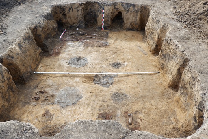 Il ritrovamento è stato effettuato nel luogo di sepoltura principale di questo vasto campo funerario, costituito da 19 kurgan (tipici tumuli della steppa pontica) su una collina sulla riva destra del fiume Devitsa. Questa tomba, all’epoca in legno, misura 7,5 x 5 metri e risale al IV secolo a.C. I tombaroli avevano già saccheggiato la parte centrale nell’antichità, compresi gli oggetti del defunto, un uomo di circa 40-49 anni. Tuttavia, in quel momento il tetto era già crollato ed è per questo che nella miscela di terra e resti di legname si sono conservati alcuni corredi funerari.