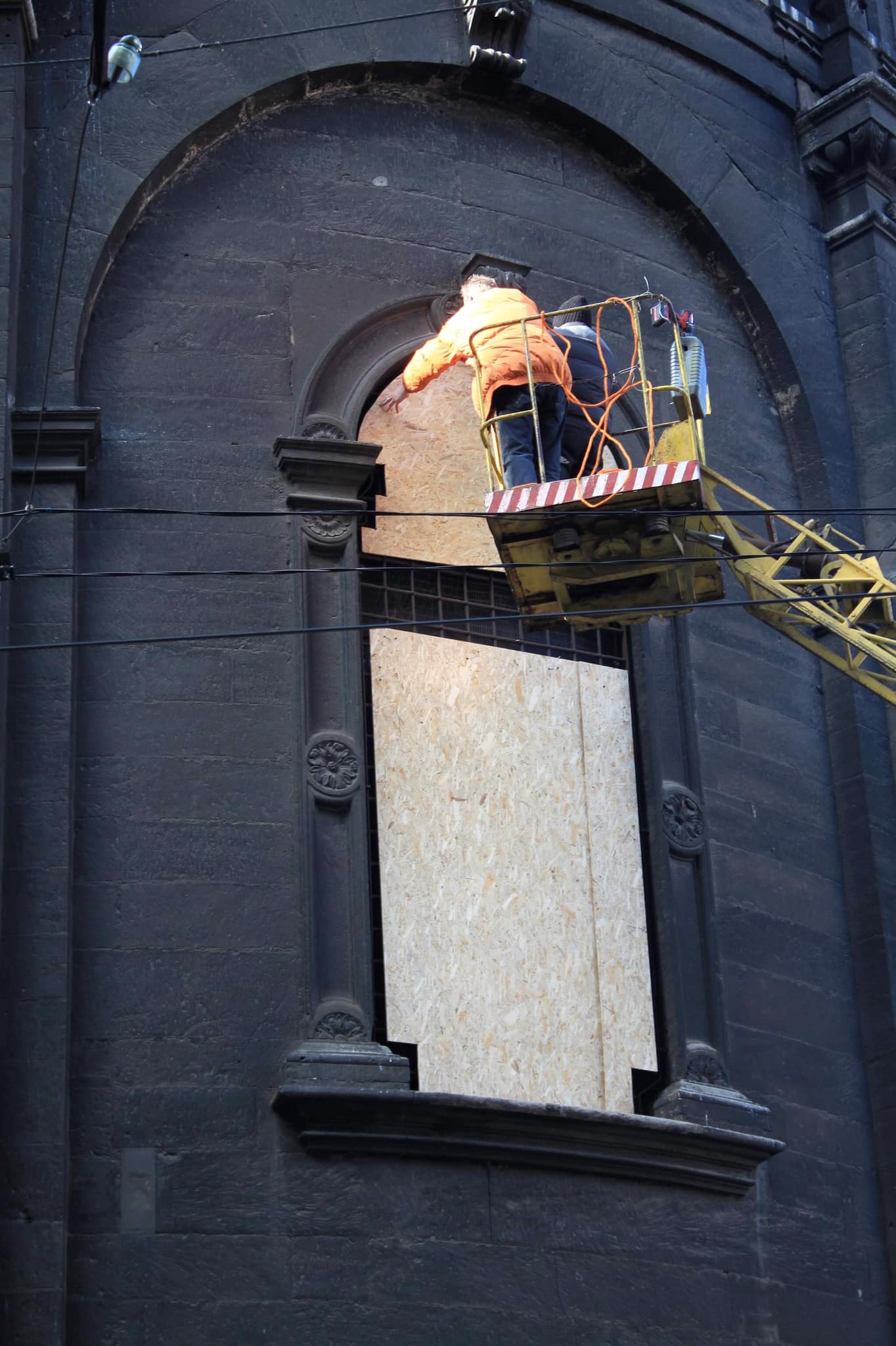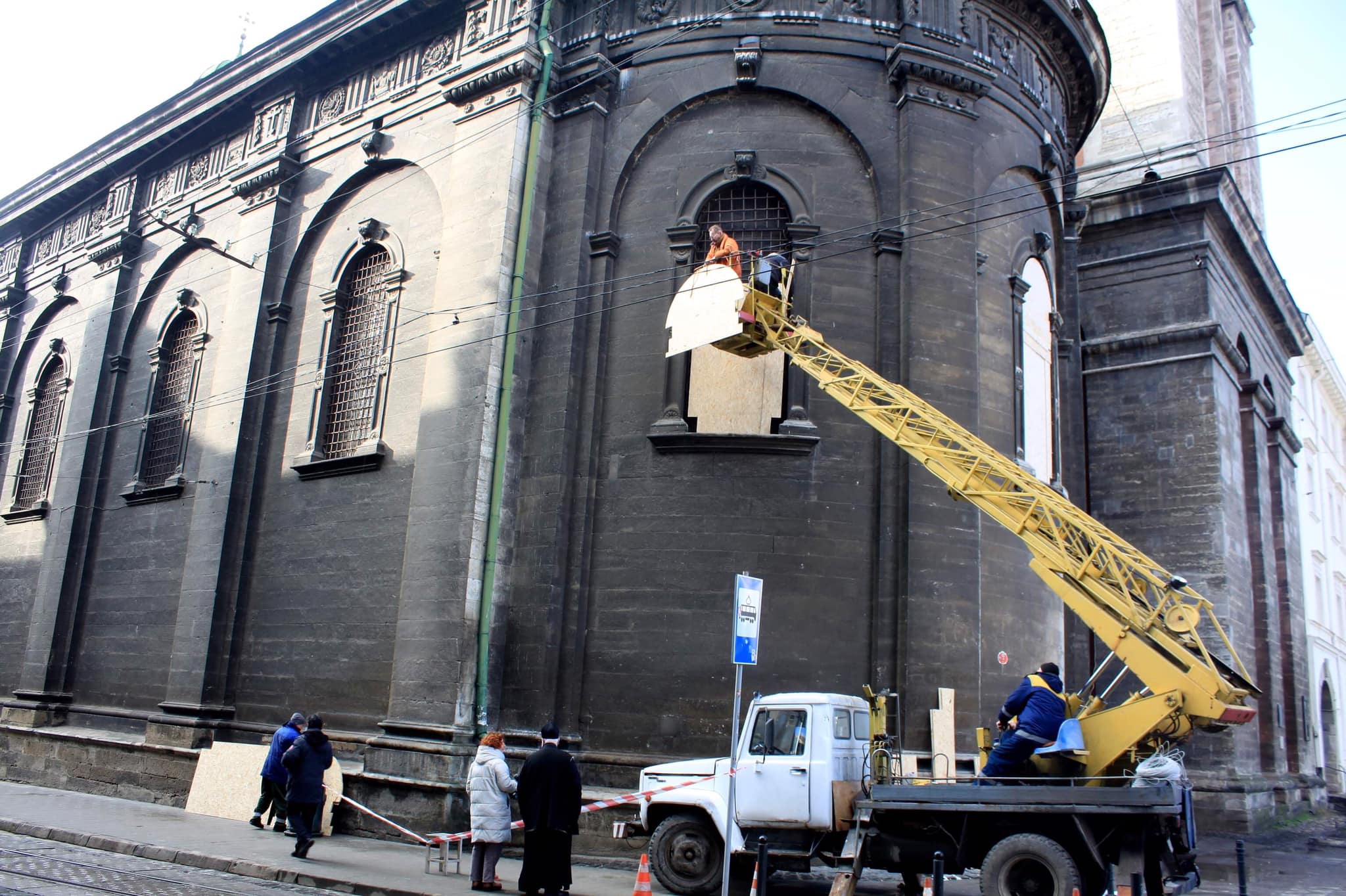 In previsione di un attacco aereo, gli abitanti di Leopoli stanno proteggendo come meglio possono le preziose statue e le fragili vetrate che decorano le chiese. Il centro storico di Leopoli è stato dichiarato patrimonio UNESCO nel 1998.