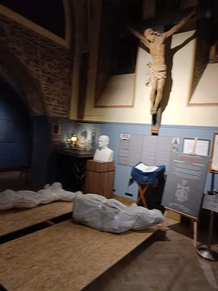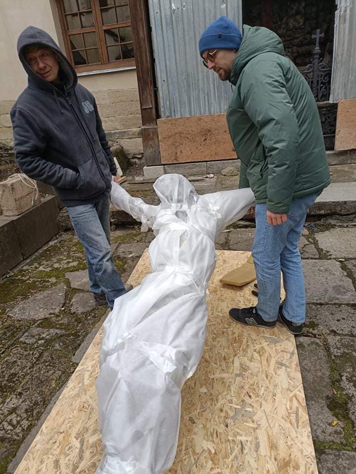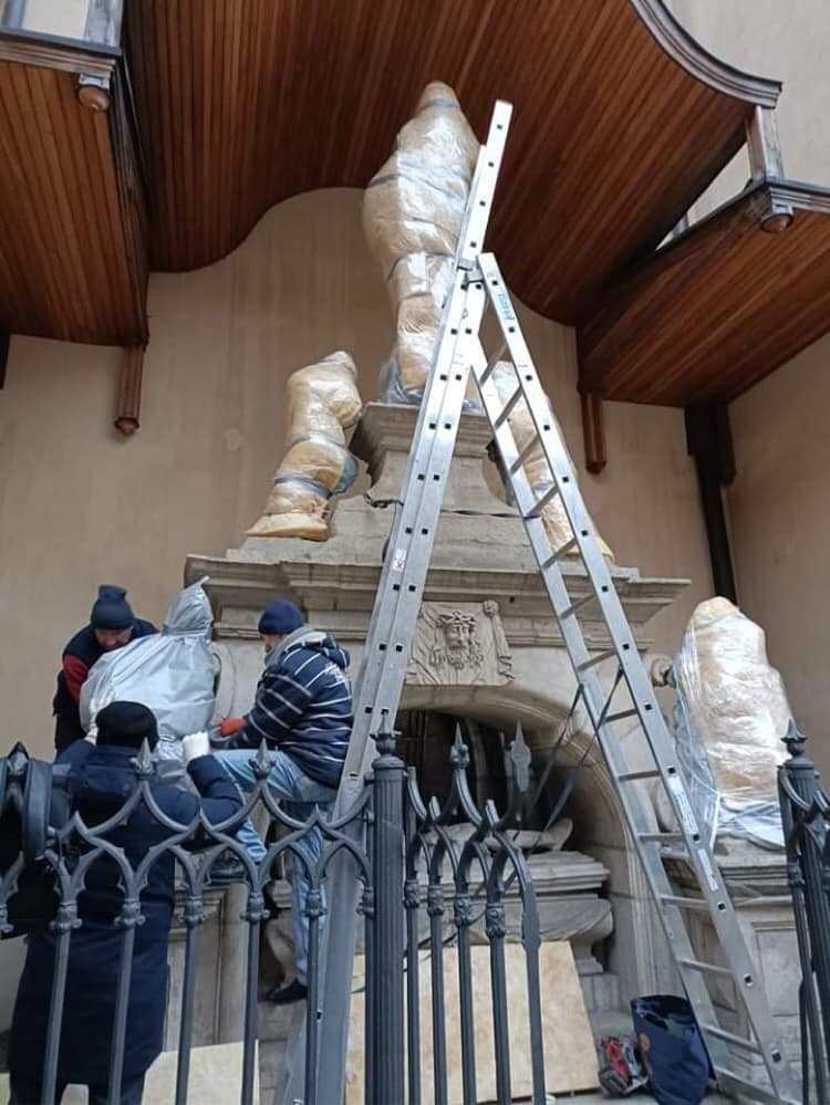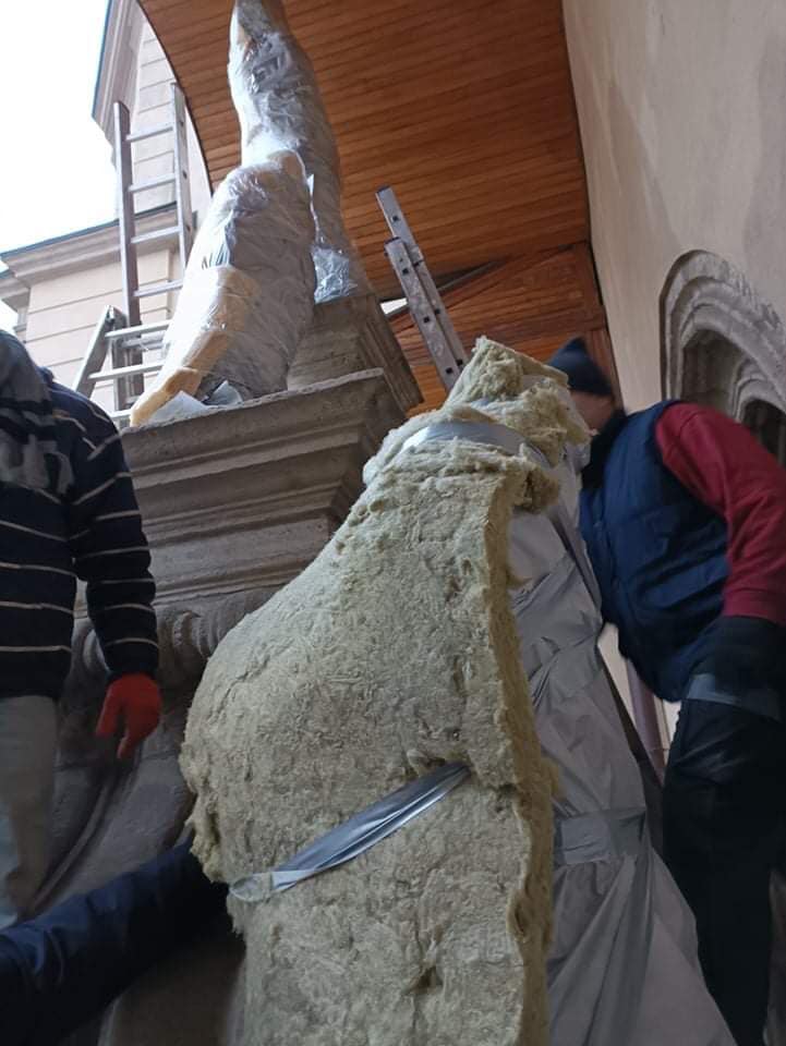«Le sculture sulle scale della Chiesa di Sant’Antonio sono protette! Restauratori e persone premurose si sono radunati [per aiutare]. Ci auguriamo che questa azione preventiva non venga messa alla prova da vere e proprie esplosioni, ma siamo lieti che gli elementi vulnerabili e così preziosi di questo monumento siano protetti. Oggi ringraziamo tutti i soggetti coinvolti, senza fare nomi. Grazie a coloro che hanno aiutato finanziariamente in silenzio senza cercare la gloria! […]», scrive la società ucraina per la protezione dei monumenti storici e culturali.