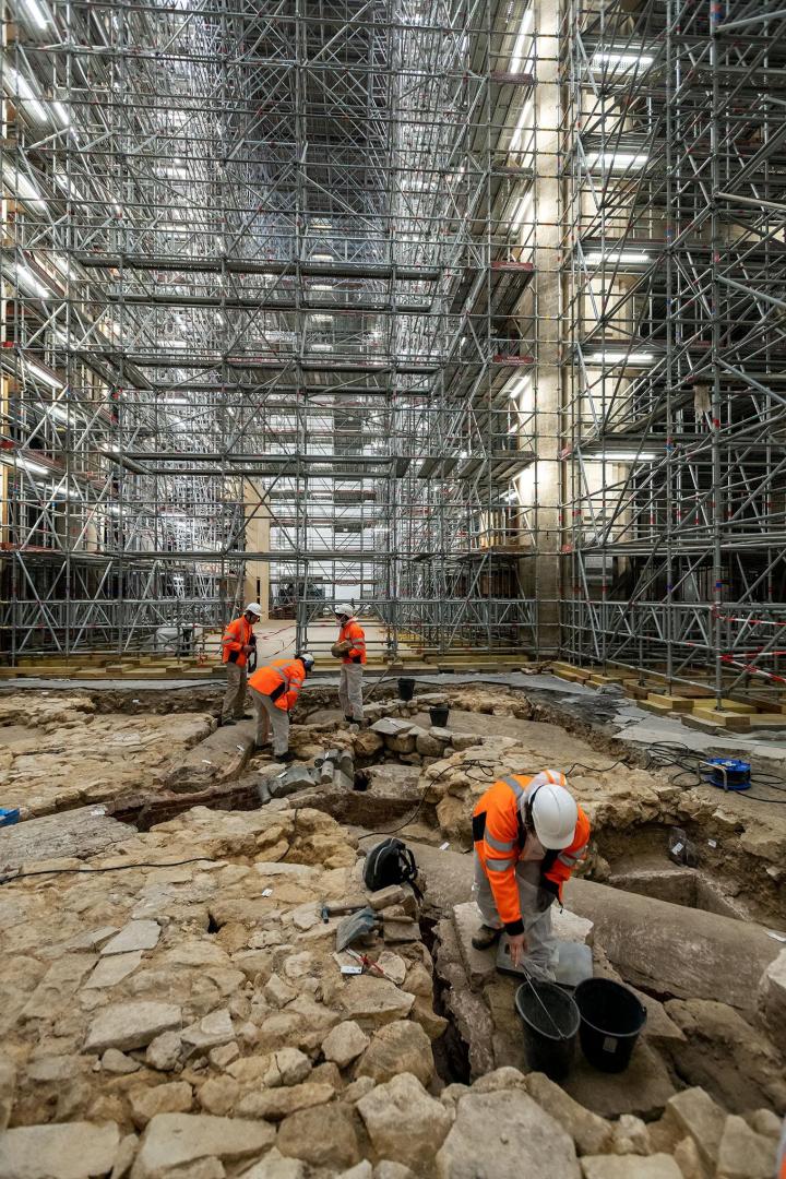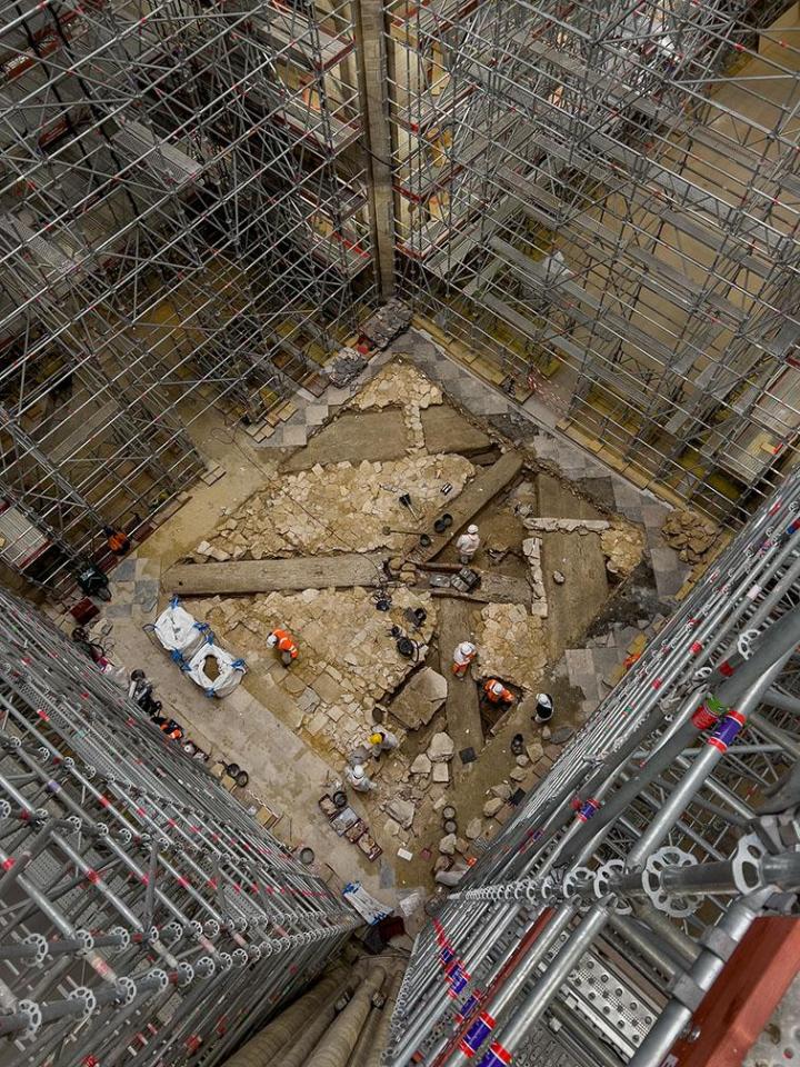 Gli scavi archeologi hanno interessato un’area di 120 m² tra il transetto e il coro della vecchia dama di pietra, necessari prima di installare un’impalcatura da 600 tonnellate e ricostruire la guglia. «Stranamente – dice Chaoui-Derieux – Notre-Dame è stata finora molto poco scavata. Ciò è stato fatto nel XVIII e XIX secolo, e c’è stato un seguito archeologico dei lavori negli anni ’80, ma senza alcuna vera operazione all’interno delle mura. Questo incidente rappresenta paradossalmente un’occasione unica per raccogliere informazioni».