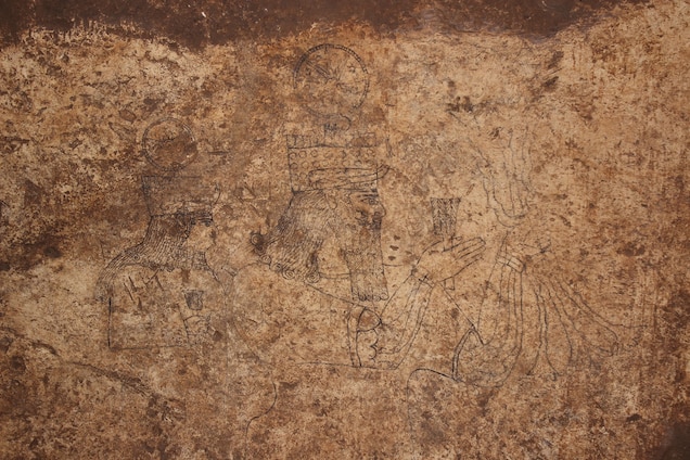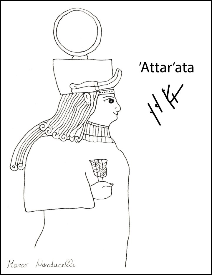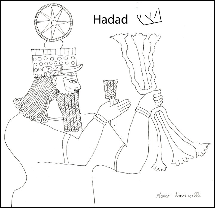 Nel pannello scoperto in Turchia le divinità aramaiche in processione sono guidate da Hadad, il gran dio della tempesta e degli agenti atmosferici che dominava il pantheon. Qui viene ritratto con una folgore nella forma del tridente in una mano, e spighe di grano nell’altra. Accanto vi è la consorte ‘Attar’ata (Atargatis), dea della fertilità, anch’essa con in mano spighe di grano, motivo per cui si ritiene che questo sito servisse a propiziare i raccolti. Portano entrambi un copricapo con un doppio paio di corna, quello di Hadad sormontato da una stella, quello di ’Attar‘ata da un cerchio.