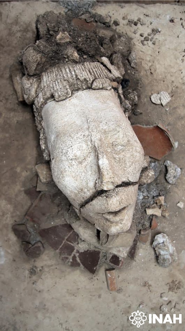 Palenque in Messico è famosa in tutto il mondo per le celebri rovine dei Maya, e uno dei suoi edifici più impressionanti – il Palazzo – è noto per conservare numerose sculture in stucco. Dal 2018, il Proyecto Conservación Arquitectónica y de los Acabados Decorativos del Palacio, diretto dall’archeologo González Cruz e dalla restauratrice Haydeé Orea Magaña, porta avanti nuove ricerche. La testa scolpita del giovane dio del mais e di un grande deposito rituale sono l’ultima delle scoperte. «Iniziamo a conoscere come gli antichi Maya di Palenque rivivessero costantemente il mitico passaggio di nascita, morte e resurrezione della divinità del mais», ha detto González Cruz. Il ritrovamento era avvenuto lo scorso luglio, dopo aver notato un curioso allineamento di pietre in un passaggio del Palacio. La testa scolpita porta tratti aggraziati: il mento e il naso sono pronunciati, le labbra fini, gli zigomi arrotondati e gli occhi sottili. Il tutto era stato accuratamente posto sopra una vasca d’acqua, che avrebbe emulato l’ingresso della divinità in un ambiente acquatico.